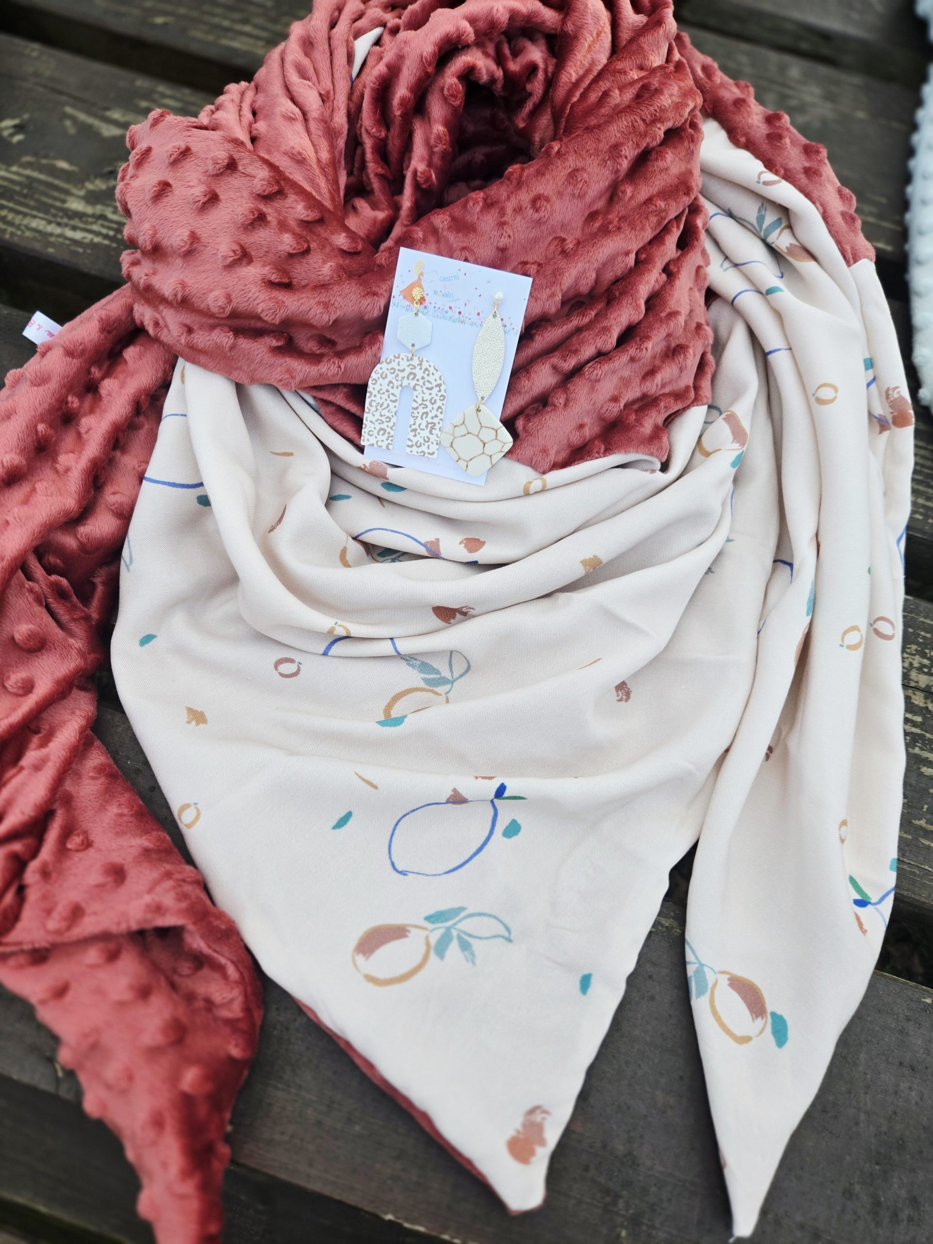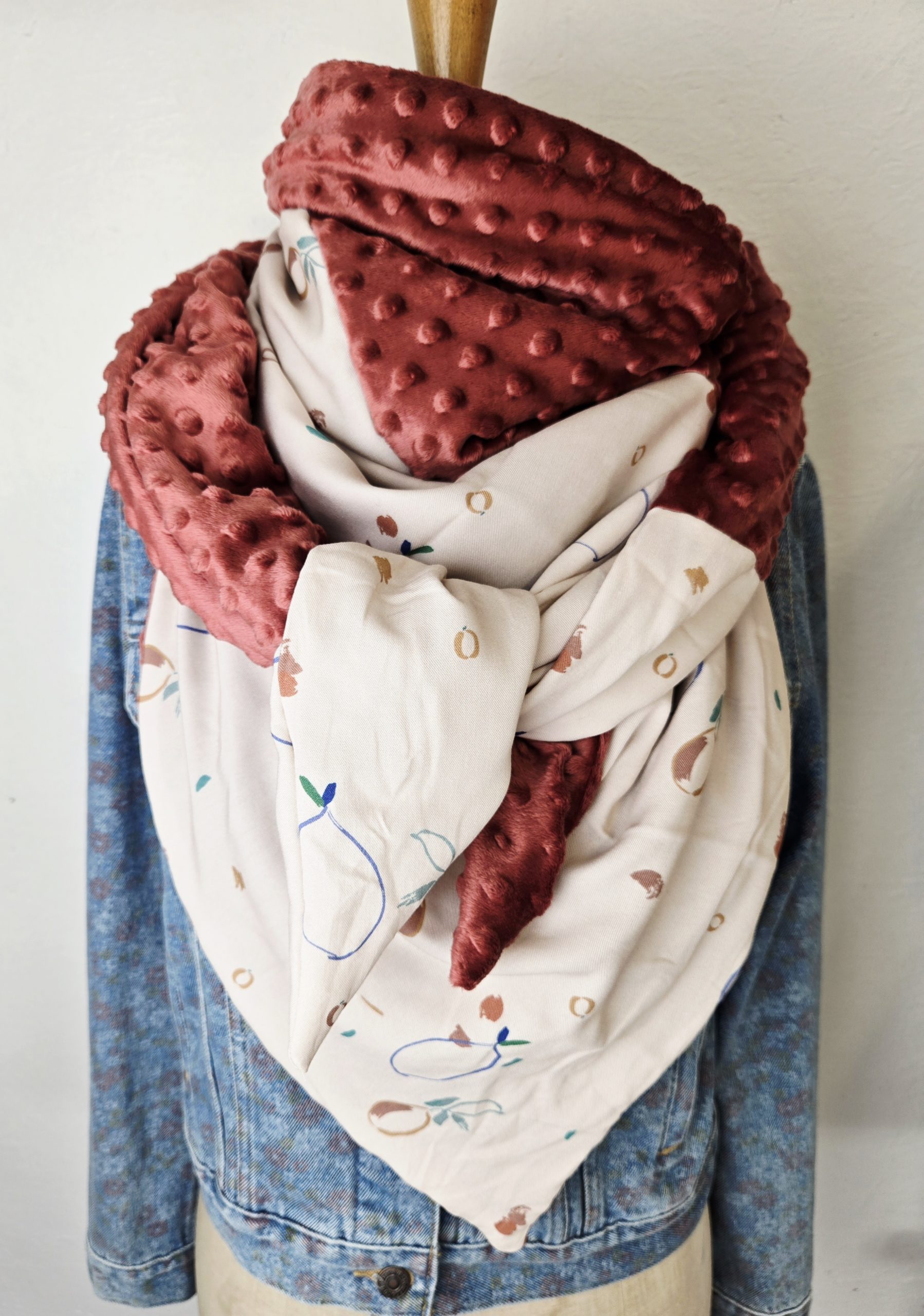 | Matière | viscose beige rosé avec poires & minkee terracotta |